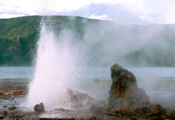 - Natural hot springs and geysers along the lakeshore